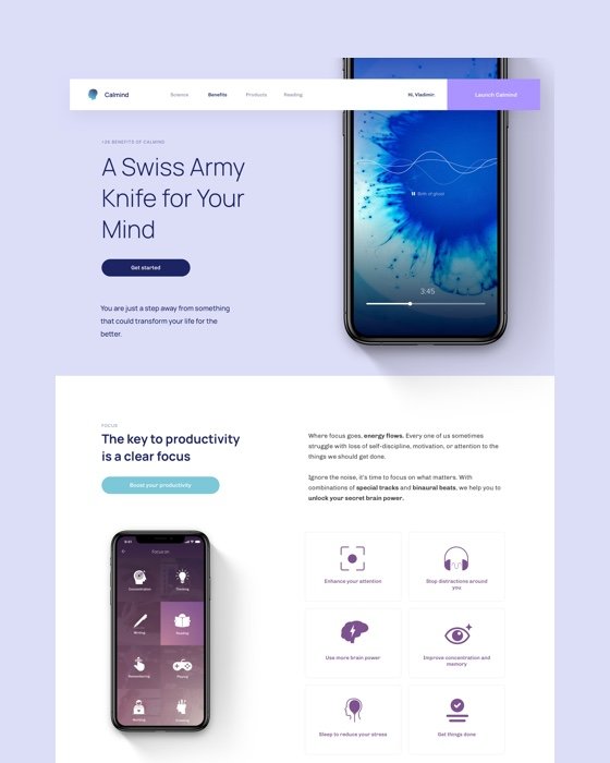 Every one of us sometimes struggles with insomnia, poor sleep habits, stress, anxiety, depression, and other negative feelings. Calmind offer their solution through native iOS app but we created also progressive web application with a responsive mobile version. Calm down with Calmind.