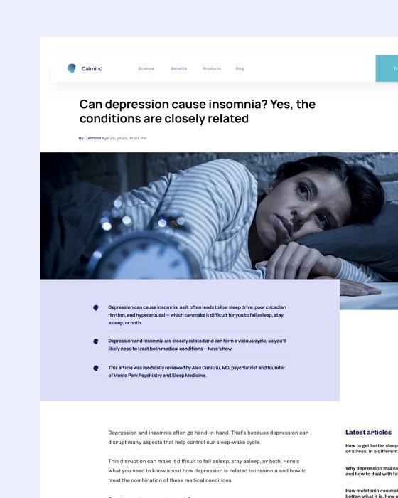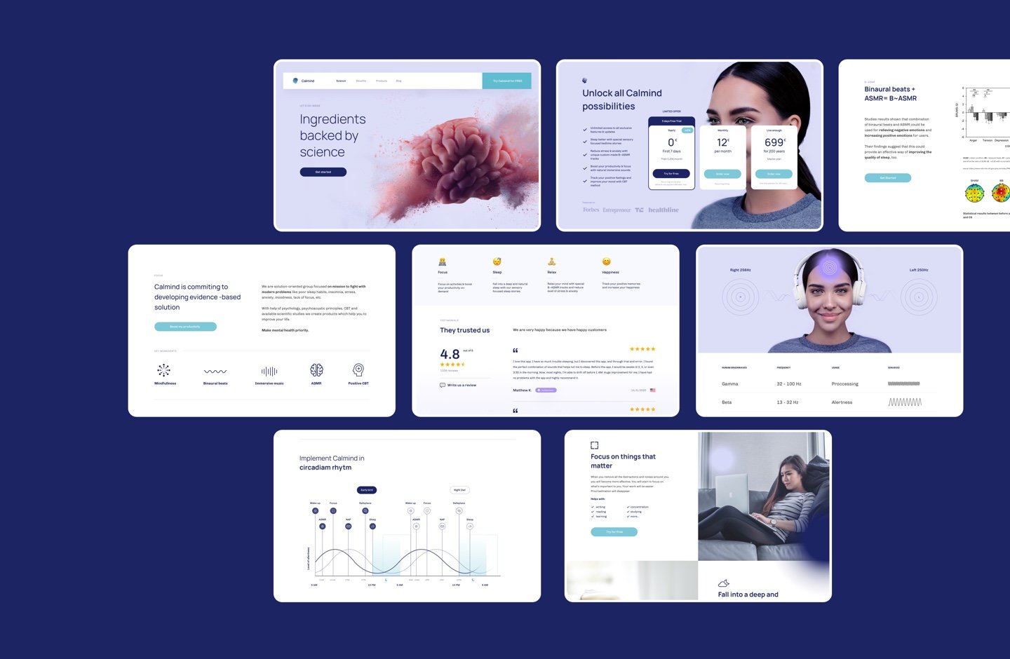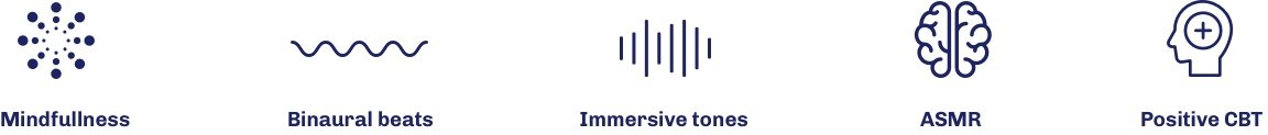 By combining elements of neuroscience, psychoacoustics, positive CBT, and technology, Calmind created an entirely new kind of treatment that provides physiological and stress - reducing benefits to each of your senses.