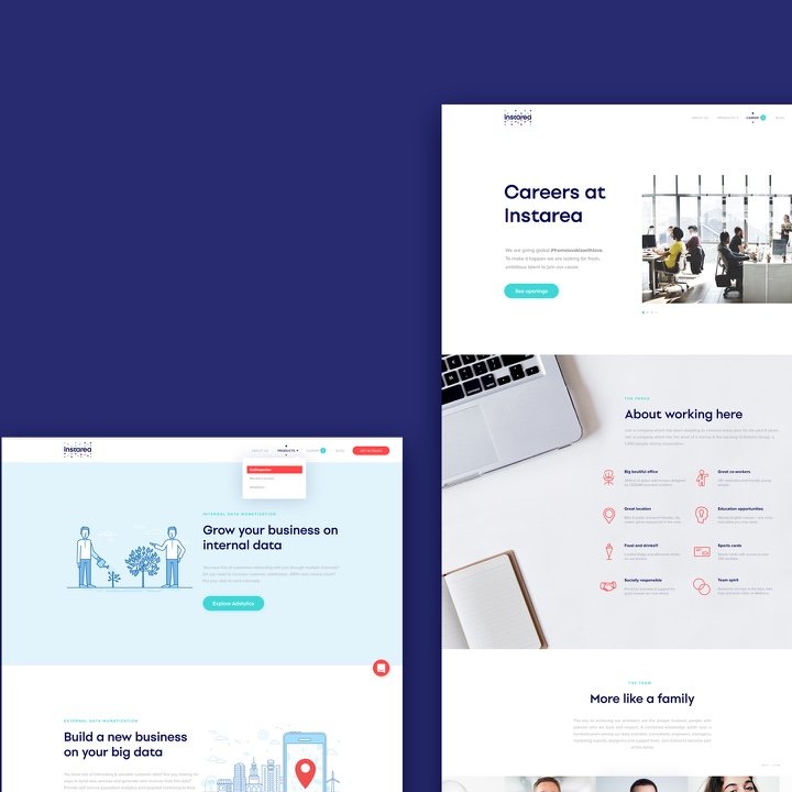 We set up a fancy and eye-catching visual tone of communication. We chose a friendly approach to communicate services and used real case studies to show the business possibilities, to make their brand more trustworthy for potential clients. Using purple-branded water ink as part of the communication strategy symbolizes their rapid expansion and reflects extended ways to discover new possibilities of how to reach new customers with the use of big telco data.